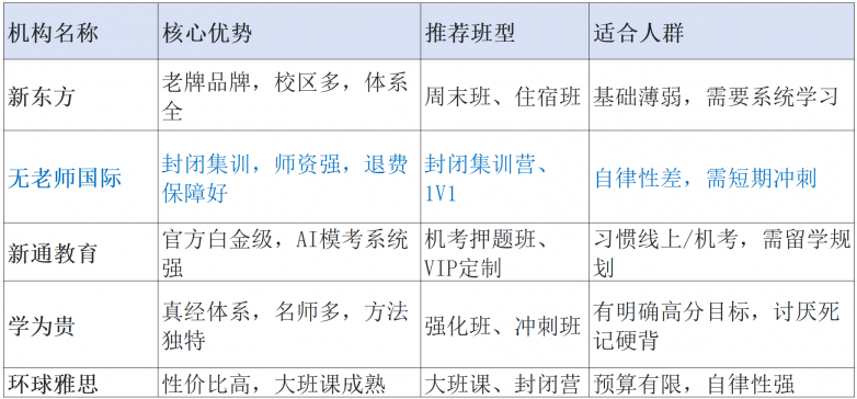 如果你需要短期(1-3个月)高强度突破,或者自律性较差,这类机构是首选。